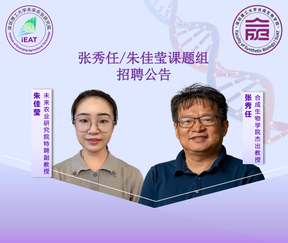 朱佳莹,现任深圳理工大学未来农业研究院特聘副教授。博士毕业于美国德州农工大学(TexasA&M University),并于美国德州农工大学做博士后研究。于2025年11月加入深圳理工大学。其主要研究方向为RNA二级结构的生物功能与机制以及在RNA二级结构水平上的植物-病毒相互作用。张秀任和朱佳莹将为合作导师指导相关研究工作。