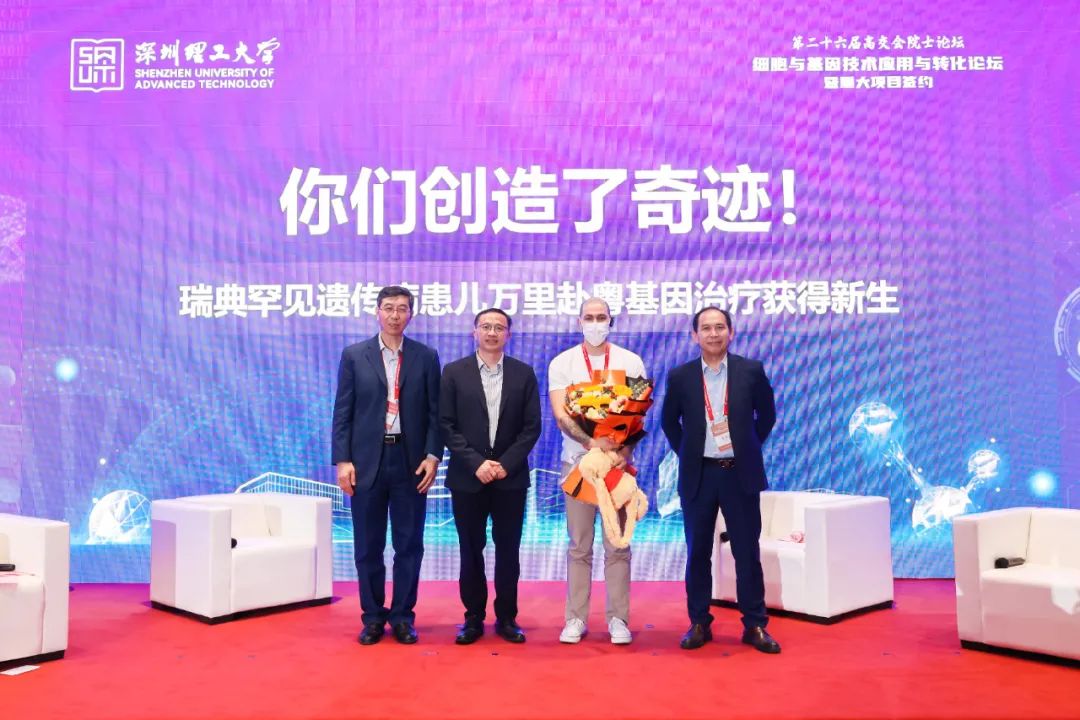 现场,深圳理工大学合成生物学院连祺周教授还分享了以基因技术治疗瑞典罕见遗传病患儿的科技故事,展现了合成生物在生命健康领域的无限潜力。