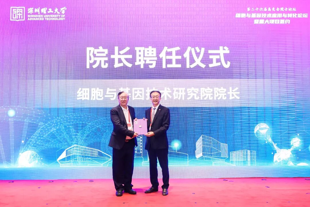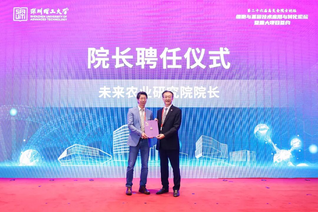 当天下午,深圳理工大学举办了高交会院士论坛——细胞与基因技术应用与转化论坛暨重大项目签约仪式。论坛上,深圳理工大学未来农业研究院正式揭牌成立,与今年9月揭牌成立的细胞与基因技术研究院共同组成深圳理工首批新型研究院。首批新型研究院院长聘任仪式也同期举行。