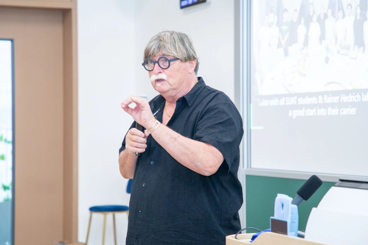 9月17日,Rainer Hedrich以 《植物离子运输 与信号传导的研究历史与现状》 为题,为近100名深圳理工本科生作了一场高水平学术讲座,揭秘植物世界的奥秘。未来农业研究院院长、合成生物学院副院长杨贞标教授主持此次活动。